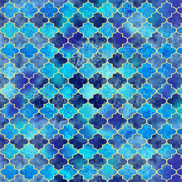 Farmer's Almanac Tiles blue Cotton Fabric sold by the yard