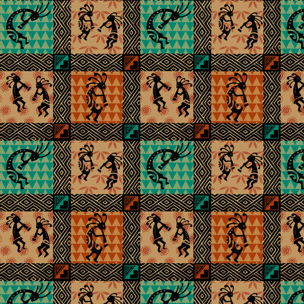 Pueblo Kokopelli blocks cotton fabric-Sold by the yard